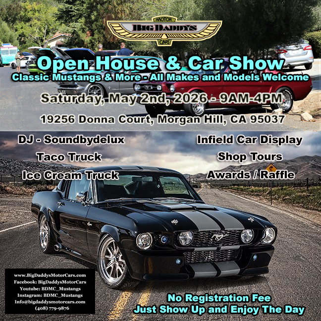 Wow … so many Mustang and car enthusiasts came out for our Open House & Car Show. For the Open House the shop was wide open for all to tour and see the many projects in progress. The Big Daddy’s team was engaged all day in car conversations … it was great. We had raffles, food vendors, and a DJ spinning tunes throughout the day.